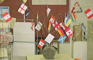 The picture is from Miss A's grade 6 class. Each flag represents where their ancestors came from.