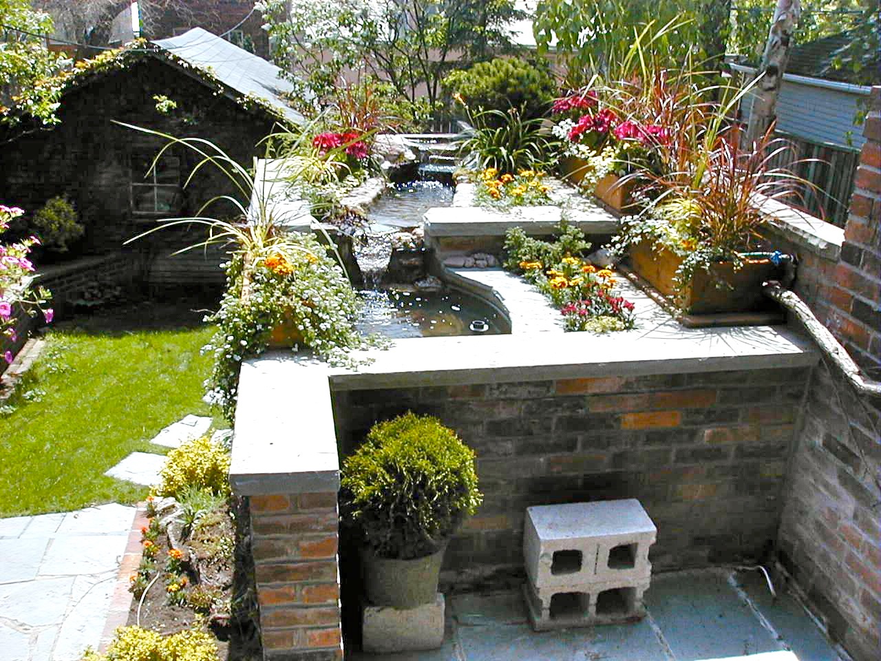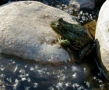 A few frogs appeared early in the construction and stayed with us right through. They hung out in the satellite ponds and streams rather than the main area with the fish.