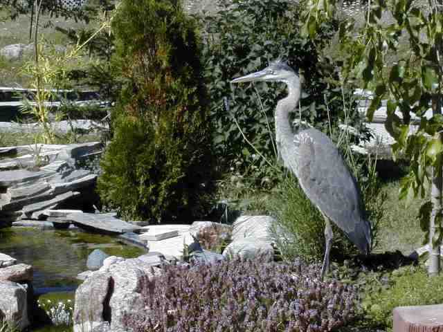 I'd been hearing about this heron for several days now from neighbours .. since we'd both been away, it had apparently been visiting our pond and dining on the koi living happily and very tamely there.