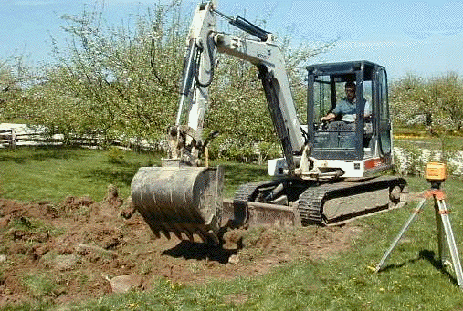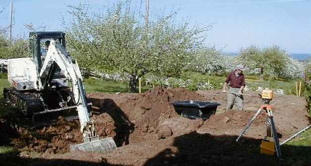 On May 15 of 2000 I hired a guy with a fancy machine like a mini excavator to come and dig a hole in the ground. First I laid out the area with stakes and a spray bomb.